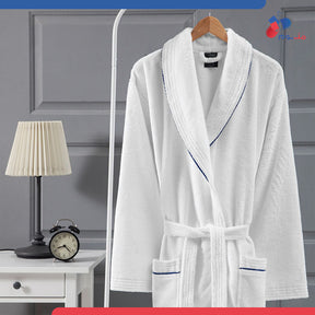 روب استحمام ابيض بتطريز اسود - قطن 100%
